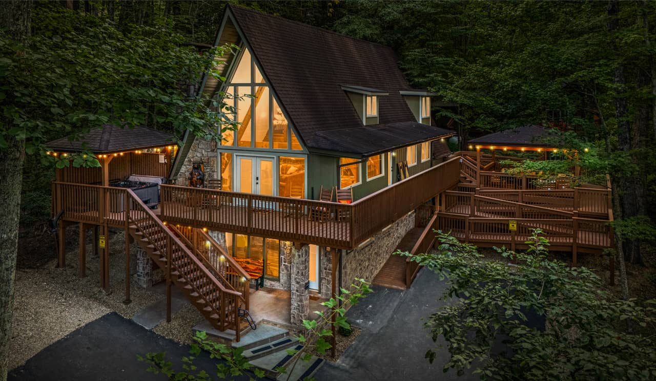 Wake up to majestic Mount LeConte views from your private cabin just 5 minutes from downtown Gatlinburg and the Great Smoky Mountains National Park. Unwind after a day of hiking or sightseeing in your own hot tub, challenge each other in two game rooms (arcade + shuffleboard + darts + pool), or relax by the fireplace on one of three decks with panoramic mountain vistas.